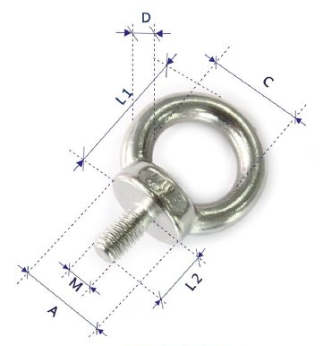 | SIZE(MM) | A(MM) | C(MM) | D(MM) | L1(MM) | L2(MM) | M(THREAD) | B.L.(LBS) |