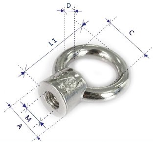 | SIZE(MM/INCH) | A(MM) | C(MM) | D(MM) | L1(MM) | M(THREAD) | B.L.(LBS) |
